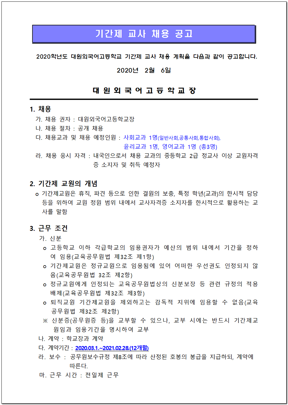 ÀÌ ÆäÀÌÁö´Â ÀÚ¹Ù½ºÅ©¸³Æ®°¡ Áö¿øµÇÁö ¾Ê´Â ºê¶ó¿ìÀú¿¡¼ ÀϺΠ±â´ÉÀÌ Á¦´ë·Î ÀÛµ¿ÇÏÁö ¾Ê½À´Ï´Ù. Á¦¸ñ 2020Çг⵵ ±â°£Á¦ ±³»ç ä¿ë °ø°í(2¿ù) À̸§ ȲÀÎÁß µî·ÏÀÏ 2020-02-06 ÷ºÎÆÄÀÏ 2020Çг⵵_´ë¿ø¿Ü°í_±â°£Á¦_±³»ç_ä¿ë_°ø°í¹®(2¿ù).pdf   ´Ù¿î·Îµå ¼ö : [ 61 ] Á¦Ãâ¼·ù¾ç½Ä_¸ðÀ½(´ë¿ø¿Ü°í).hwp   ´Ù¿î·Îµå ¼ö : [ 36 ] Àüü ÆÄÀÏ ´Ù¿î·Îµå ºê¶ó¿ìÀú º¸¾È ¾÷µ¥ÀÌÆ®·Î ÀÎÇÑ ´Ù¿î·Îµå ºÒ°¡ ½Ã, ´Ù¿î·Îµå ¾È³» ¿§Áö : edge://settings/content/insecureContent [Ŭ¸¯ ÈÄ ÁÖ¼Òâ¿¡ ºÙ¿©³Ö±â] Å©·Ò : chrome://settings/content/insecureContent [Ŭ¸¯ ÈÄ ÁÖ¼Òâ¿¡ ºÙ¿©³Ö±â] À§ ÁÖ¼Ò·Î Á¢±ÙÇϼż Çã¿ë ºÎºÐ¿¡ Çб³ µµ¸ÞÀÎ()À» ³Ö°í ÀúÀåÇÏ½Ã¸é ´Ù¿î·Îµå°¡ °¡´ÉÇØÁý´Ï´Ù. ÀμâÇϱ⠸ñ·Ï ÀÌÀü±Û 2020Çг⵵ ±â°£Á¦ ±³»ç ä¿ë ¼ö¾÷½Ç¿¬ ¹× ¸éÁ¢ ¾È³»(1¿ù) / ȲÀÎÁß 2020.02.03 ´ÙÀ½±Û 2020Çг⵵ ±â°£Á¦ ±³»ç ä¿ë ¼ö¾÷½Ç¿¬ ¹× ¸éÁ¢ ¾È³»(2¿ù) / ȲÀÎÁß 2020.02.11