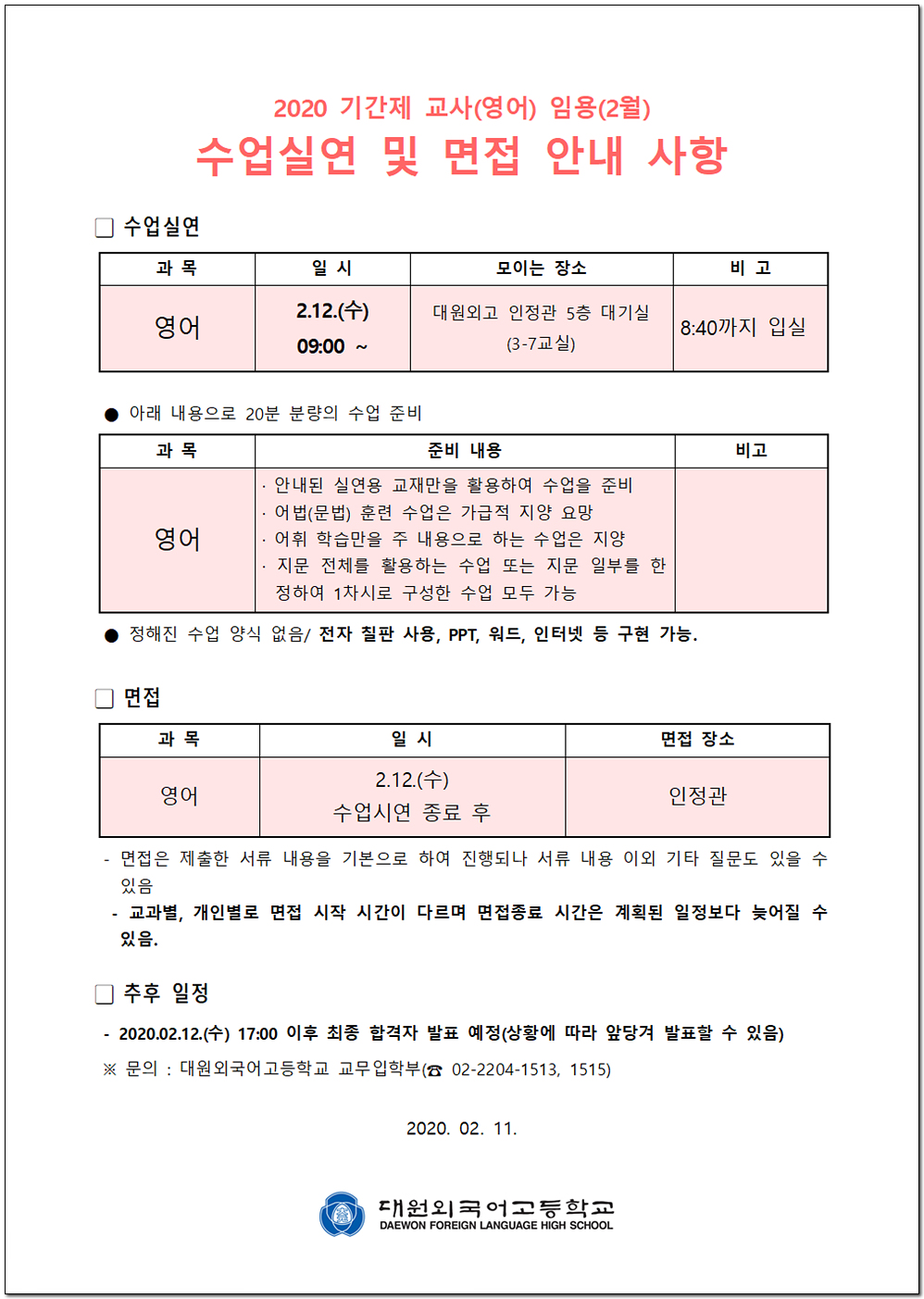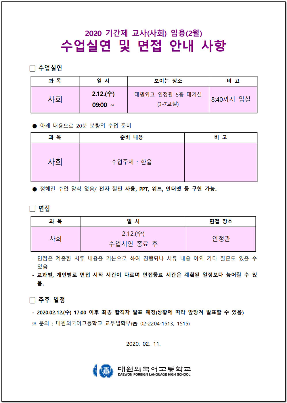 ÀÌ ÆäÀÌÁö´Â ÀÚ¹Ù½ºÅ©¸³Æ®°¡ Áö¿øµÇÁö ¾Ê´Â ºê¶ó¿ìÀú¿¡¼ ÀϺΠ±â´ÉÀÌ Á¦´ë·Î ÀÛµ¿ÇÏÁö ¾Ê½À´Ï´Ù. Á¦¸ñ 2020Çг⵵ ±â°£Á¦ ±³»ç ä¿ë ¼ö¾÷½Ç¿¬ ¹× ¸éÁ¢ ¾È³»(2¿ù) À̸§ ȲÀÎÁß µî·ÏÀÏ 2020-02-11 ÷ºÎÆÄÀÏ 2020Çг⵵_±â°£Á¦±³»ç_ÀÓ¿ë_¼ö¾÷½Ç¿¬_¹×_¸éÁ¢_¾È³»(ȨÆäÀÌÁö_°øÁö¿ë)_»çȸ°ú.pdf   ´Ù¿î·Îµå ¼ö : [ 49 ] 2020Çг⵵_±â°£Á¦±³»ç_ÀÓ¿ë_¼ö¾÷½Ç¿¬_¹×_¸éÁ¢_¾È³»(ȨÆäÀÌÁö_°øÁö¿ë)_¿µ¾î°ú.pdf   ´Ù¿î·Îµå ¼ö : [ 54 ] Àüü ÆÄÀÏ ´Ù¿î·Îµå ºê¶ó¿ìÀú º¸¾È ¾÷µ¥ÀÌÆ®·Î ÀÎÇÑ ´Ù¿î·Îµå ºÒ°¡ ½Ã, ´Ù¿î·Îµå ¾È³» ¿§Áö : edge://settings/content/insecureContent [Ŭ¸¯ ÈÄ ÁÖ¼Òâ¿¡ ºÙ¿©³Ö±â] Å©·Ò : chrome://settings/content/insecureContent [Ŭ¸¯ ÈÄ ÁÖ¼Òâ¿¡ ºÙ¿©³Ö±â] À§ ÁÖ¼Ò·Î Á¢±ÙÇϼż Çã¿ë ºÎºÐ¿¡ Çб³ µµ¸ÞÀÎ()À» ³Ö°í ÀúÀåÇÏ½Ã¸é ´Ù¿î·Îµå°¡ °¡´ÉÇØÁý´Ï´Ù. ÀμâÇϱ⠸ñ·Ï ÀÌÀü±Û 2020Çг⵵ ±â°£Á¦ ±³»ç ä¿ë °ø°í(2¿ù) / ȲÀÎÁß 2020.02.06 ´ÙÀ½±Û 2020Çг⵵ ±â°£Á¦ ±³»ç ä¿ë °ø°í(»çȸ±³°ú) / ȲÀÎÁß 2020.02.14
