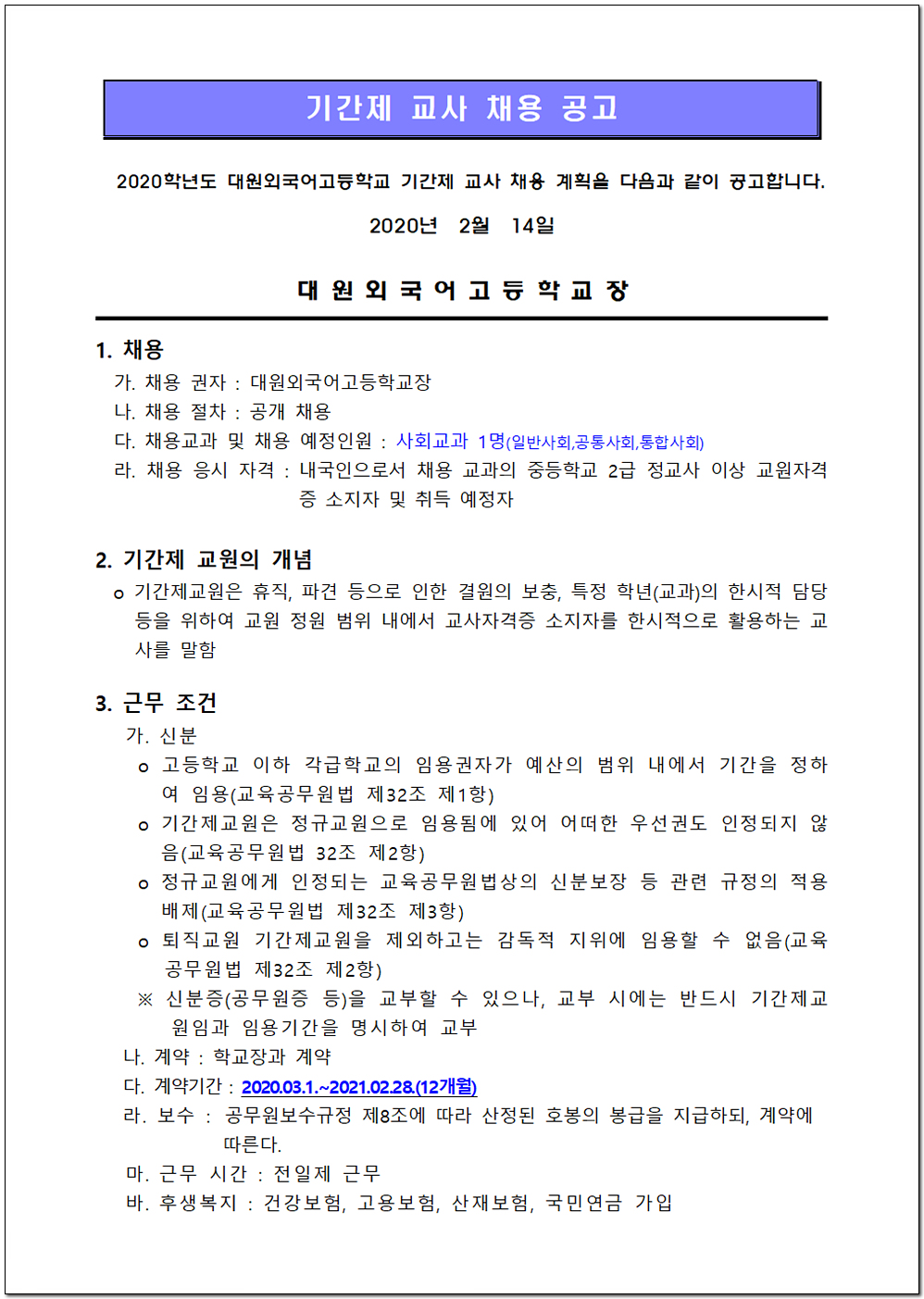 ÀÌ ÆäÀÌÁö´Â ÀÚ¹Ù½ºÅ©¸³Æ®°¡ Áö¿øµÇÁö ¾Ê´Â ºê¶ó¿ìÀú¿¡¼ ÀϺΠ±â´ÉÀÌ Á¦´ë·Î ÀÛµ¿ÇÏÁö ¾Ê½À´Ï´Ù. Á¦¸ñ 2020Çг⵵ ±â°£Á¦ ±³»ç ä¿ë °ø°í(»çȸ±³°ú) À̸§ ȲÀÎÁß µî·ÏÀÏ 2020-02-14 ÷ºÎÆÄÀÏ 2020Çг⵵_´ë¿ø¿Ü°í_±â°£Á¦_±³»ç_ä¿ë_°ø°í¹®.pdf   ´Ù¿î·Îµå ¼ö : [ 42 ] Á¦Ãâ¼·ù¾ç½Ä_¸ðÀ½(´ë¿ø¿Ü°í).hwp   ´Ù¿î·Îµå ¼ö : [ 14 ] Àüü ÆÄÀÏ ´Ù¿î·Îµå ºê¶ó¿ìÀú º¸¾È ¾÷µ¥ÀÌÆ®·Î ÀÎÇÑ ´Ù¿î·Îµå ºÒ°¡ ½Ã, ´Ù¿î·Îµå ¾È³» ¿§Áö : edge://settings/content/insecureContent [Ŭ¸¯ ÈÄ ÁÖ¼Òâ¿¡ ºÙ¿©³Ö±â] Å©·Ò : chrome://settings/content/insecureContent [Ŭ¸¯ ÈÄ ÁÖ¼Òâ¿¡ ºÙ¿©³Ö±â] À§ ÁÖ¼Ò·Î Á¢±ÙÇϼż Çã¿ë ºÎºÐ¿¡ Çб³ µµ¸ÞÀÎ()À» ³Ö°í ÀúÀåÇÏ½Ã¸é ´Ù¿î·Îµå°¡ °¡´ÉÇØÁý´Ï´Ù. ÀμâÇϱ⠸ñ·Ï ÀÌÀü±Û 2020Çг⵵ ±â°£Á¦ ±³»ç ä¿ë ¼ö¾÷½Ç¿¬ ¹× ¸éÁ¢ ¾È³»(2¿ù) / ȲÀÎÁß 2020.02.11 ´ÙÀ½±Û 2020Çг⵵ ±â°£Á¦ ±³»ç ä¿ë ¼ö¾÷½Ç¿¬ ¹× ¸éÁ¢ ¾È³»(»çȸ±³°ú) / ȲÀÎÁß 2020.02.17