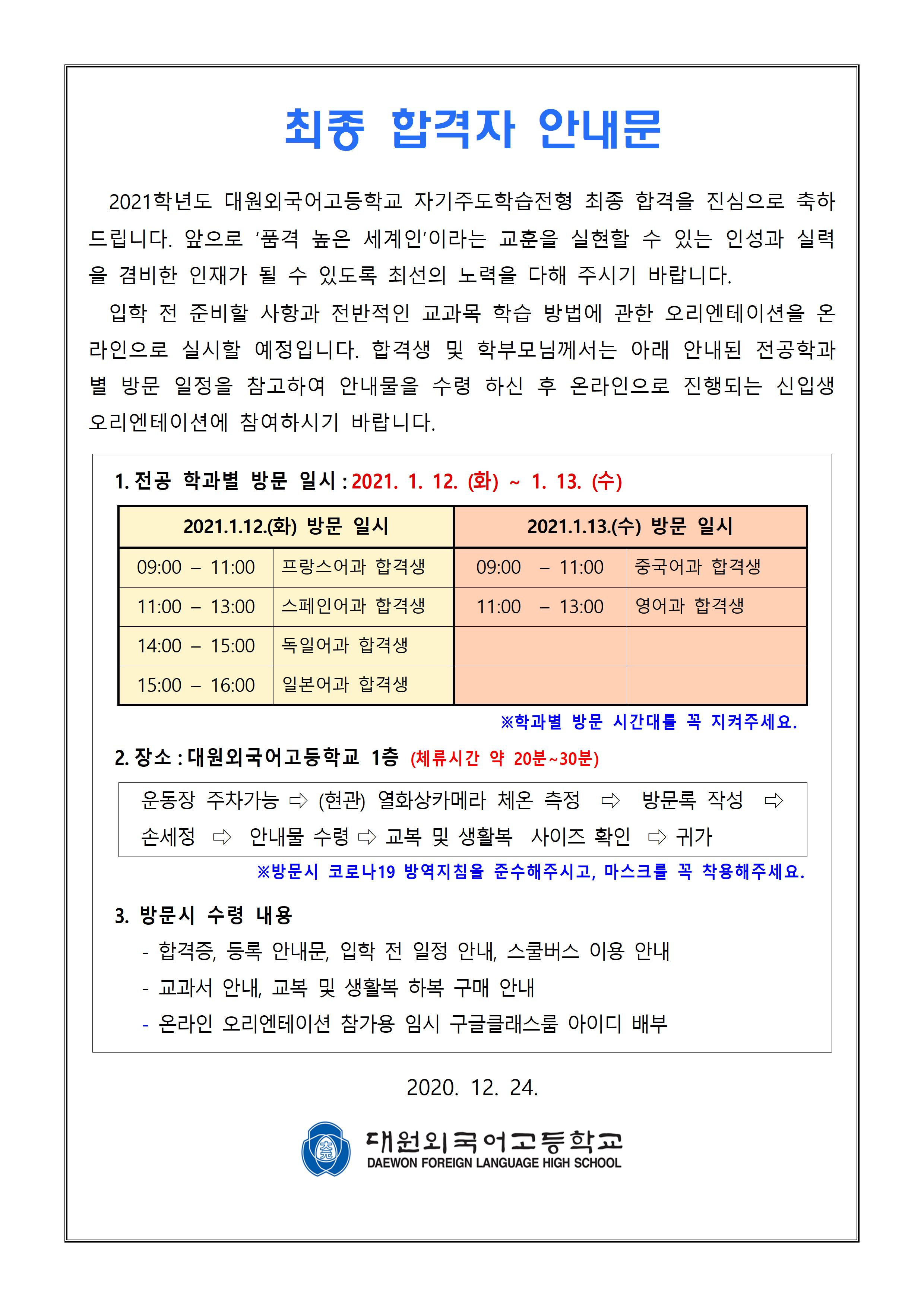 ÀÌ ÆäÀÌÁö´Â ÀÚ¹Ù½ºÅ©¸³Æ®°¡ Áö¿øµÇÁö ¾Ê´Â ºê¶ó¿ìÀú¿¡¼ ÀϺΠ±â´ÉÀÌ Á¦´ë·Î ÀÛµ¿ÇÏÁö ¾Ê½À´Ï´Ù. Á¦¸ñ 2021Çг⵵ ½ÅÀÔ»ý ¼±¹ßÀüÇü ÃÖÁ¾ÇÕ°ÝÀÚ ¾È³»¹® À̸§ ȲÀÎÁß µî·ÏÀÏ 2020-12-29 ÷ºÎÆÄÀÏ 2021Çг⵵_´ë¿ø¿Ü°í_½ÅÀÔ»ý_¼±¹ßÀüÇü_ÃÖÁ¾_ÇÕ°ÝÀÚ_¾È³»¹®.pdf   ´Ù¿î·Îµå ¼ö : [ 229 ] Àüü ÆÄÀÏ ´Ù¿î·Îµå ºê¶ó¿ìÀú º¸¾È ¾÷µ¥ÀÌÆ®·Î ÀÎÇÑ ´Ù¿î·Îµå ºÒ°¡ ½Ã, ´Ù¿î·Îµå ¾È³» ¿§Áö : edge://settings/content/insecureContent [Ŭ¸¯ ÈÄ ÁÖ¼Òâ¿¡ ºÙ¿©³Ö±â] Å©·Ò : chrome://settings/content/insecureContent [Ŭ¸¯ ÈÄ ÁÖ¼Òâ¿¡ ºÙ¿©³Ö±â] À§ ÁÖ¼Ò·Î Á¢±ÙÇϼż Çã¿ë ºÎºÐ¿¡ Çб³ µµ¸ÞÀÎ()À» ³Ö°í ÀúÀåÇÏ½Ã¸é ´Ù¿î·Îµå°¡ °¡´ÉÇØÁý´Ï´Ù. ÀμâÇϱ⠸ñ·Ï ÀÌÀü±Û 2021Çг⵵ ÀÚ±âÁÖµµÇнÀÀüÇü Ãß°¡¸ðÁý¾È³» / ´ë¿ø¿Ü°í 2020.12.24 ´ÙÀ½±Û 2021Çг⵵ ½ÅÀÔ»ý ÀÔÇÐÁغñ±Ý »çÀü ¾È³» / ´ë¿ø¿Ü°í 2021.01.06