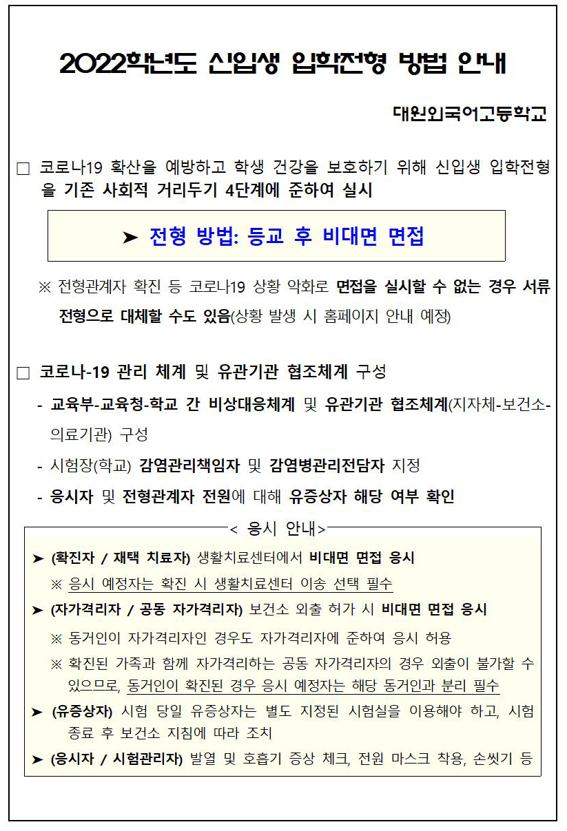 ÀÌ ÆäÀÌÁö´Â ÀÚ¹Ù½ºÅ©¸³Æ®°¡ Áö¿øµÇÁö ¾Ê´Â ºê¶ó¿ìÀú¿¡¼ ÀϺΠ±â´ÉÀÌ Á¦´ë·Î ÀÛµ¿ÇÏÁö ¾Ê½À´Ï´Ù. Á¦¸ñ 2022Çг⵵ ½ÅÀÔ»ý ÀÔÇÐÀüÇü ¹æ¹ý ¾È³» À̸§ ´ë¿ø¿Ü°í µî·ÏÀÏ 2021-11-30 ÷ºÎÆÄÀÏ 2022Çг⵵ ½ÅÀÔ»ý ÀÔÇÐÀüÇü ¹æ¹ý ¾È³».pdf   ´Ù¿î·Îµå ¼ö : [ 285 ] Àüü ÆÄÀÏ ´Ù¿î·Îµå ºê¶ó¿ìÀú º¸¾È ¾÷µ¥ÀÌÆ®·Î ÀÎÇÑ ´Ù¿î·Îµå ºÒ°¡ ½Ã, ´Ù¿î·Îµå ¾È³» ¿§Áö : edge://settings/content/insecureContent [Ŭ¸¯ ÈÄ ÁÖ¼Òâ¿¡ ºÙ¿©³Ö±â] Å©·Ò : chrome://settings/content/insecureContent [Ŭ¸¯ ÈÄ ÁÖ¼Òâ¿¡ ºÙ¿©³Ö±â] À§ ÁÖ¼Ò·Î Á¢±ÙÇϼż Çã¿ë ºÎºÐ¿¡ Çб³ µµ¸ÞÀÎ()À» ³Ö°í ÀúÀåÇÏ½Ã¸é ´Ù¿î·Îµå°¡ °¡´ÉÇØÁý´Ï´Ù. ÀμâÇϱ⠸ñ·Ï ÀÌÀü±Û 2022Çг⵵ ´ë¿ø¿Ü°í ½ÅÀÔ»ý ÀÔÇÐ µî·Ï±Ý ¾È³» / ´ë¿ø¿Ü°í 2021.11.22 ´ÙÀ½±Û 2021Çг⵵ ÇлçÀÏÁ¤ ¾È³»(2021³â 11¿ù 29ÀÏ ±âÁØ) / À̹οë 2021.11.30