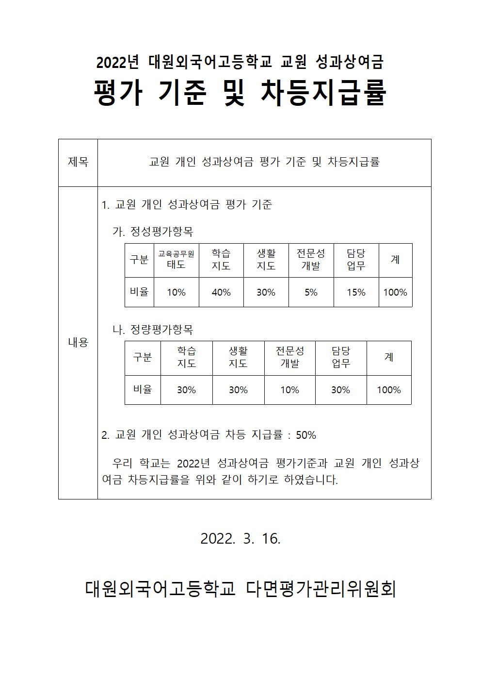 ÀÌ ÆäÀÌÁö´Â ÀÚ¹Ù½ºÅ©¸³Æ®°¡ Áö¿øµÇÁö ¾Ê´Â ºê¶ó¿ìÀú¿¡¼ ÀϺΠ±â´ÉÀÌ Á¦´ë·Î ÀÛµ¿ÇÏÁö ¾Ê½À´Ï´Ù. Á¦¸ñ 2022³â ±³¿ø ¼º°ú»ó¿©±Ý Æò°¡±âÁØ ¹× Â÷µîÁö±Þ·ü À̸§ ´ë¿ø¿Ü°í µî·ÏÀÏ 2022-03-17 ÷ºÎÆÄÀÏ 2022³â ±³¿ø ¼º°ú»ó¿©±Ý Æò°¡±âÁØ ¹× Â÷µîÁö±Þ·ü.hwp   ´Ù¿î·Îµå ¼ö : [ 27 ] Àüü ÆÄÀÏ ´Ù¿î·Îµå ºê¶ó¿ìÀú º¸¾È ¾÷µ¥ÀÌÆ®·Î ÀÎÇÑ ´Ù¿î·Îµå ºÒ°¡ ½Ã, ´Ù¿î·Îµå ¾È³» ¿§Áö : edge://settings/content/insecureContent [Ŭ¸¯ ÈÄ ÁÖ¼Òâ¿¡ ºÙ¿©³Ö±â] Å©·Ò : chrome://settings/content/insecureContent [Ŭ¸¯ ÈÄ ÁÖ¼Òâ¿¡ ºÙ¿©³Ö±â] À§ ÁÖ¼Ò·Î Á¢±ÙÇϼż Çã¿ë ºÎºÐ¿¡ Çб³ µµ¸ÞÀÎ()À» ³Ö°í ÀúÀåÇÏ½Ã¸é ´Ù¿î·Îµå°¡ °¡´ÉÇØÁý´Ï´Ù. ÀμâÇϱ⠸ñ·Ï ÀÌÀü±Û Á¦7±â Çкθðȸ ÀÓ¿ø ´ç¼±ÀÚ °ø°í / ¹Ú¼º¹Î 2022.03.15 ´ÙÀ½±Û Çб³±Þ½Ä Á¶¸®Á¾»ç¿ø ä¿ë °ø°í(½Å¼Ó) / ±èÀ¯¸® 2022.03.21