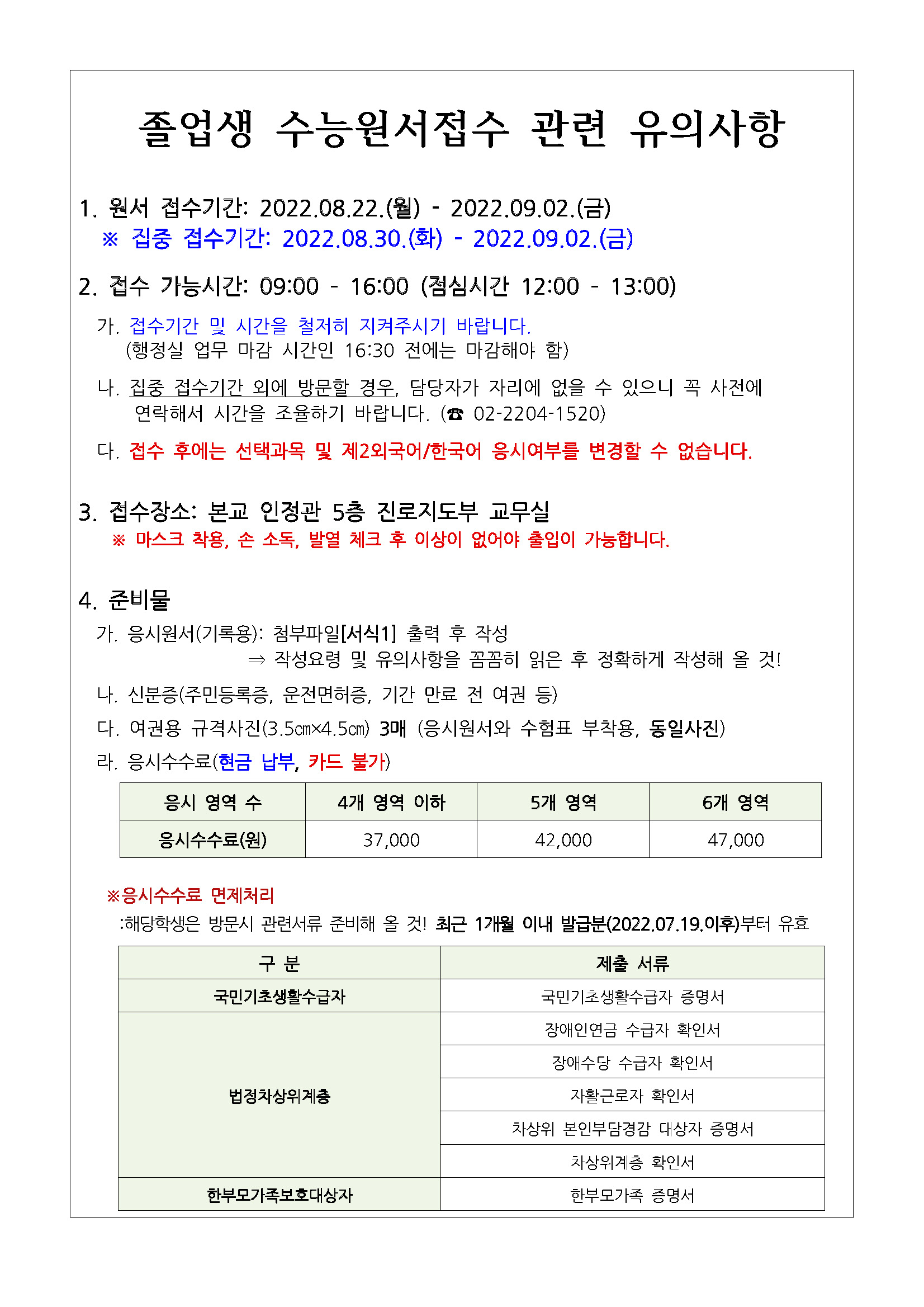 ÀÌ ÆäÀÌÁö´Â ÀÚ¹Ù½ºÅ©¸³Æ®°¡ Áö¿øµÇÁö ¾Ê´Â ºê¶ó¿ìÀú¿¡¼ ÀϺΠ±â´ÉÀÌ Á¦´ë·Î ÀÛµ¿ÇÏÁö ¾Ê½À´Ï´Ù. Á¦¸ñ Á¹¾÷»ý ¼ö´É¿ø¼Á¢¼ö °ü·Ã À¯ÀÇ»çÇ× À̸§ ´ë¿ø¿Ü°í µî·ÏÀÏ 2022-08-17 ÷ºÎÆÄÀÏ 2022 Á¹¾÷»ý ¼ö´É¿ø¼Á¢¼ö ¾È³».pdf   ´Ù¿î·Îµå ¼ö : [ 99 ] (¼½Ä1) ÀÀ½Ã¿ø¼(±â·Ï¿ë).hwpx   ´Ù¿î·Îµå ¼ö : [ 155 ] (¼½Ä2) ´ë¸®Á¢¼ö¼¾à¼.hwpx   ´Ù¿î·Îµå ¼ö : [ 30 ] Àüü ÆÄÀÏ ´Ù¿î·Îµå ºê¶ó¿ìÀú º¸¾È ¾÷µ¥ÀÌÆ®·Î ÀÎÇÑ ´Ù¿î·Îµå ºÒ°¡ ½Ã, ´Ù¿î·Îµå ¾È³» ¿§Áö : edge://settings/content/insecureContent [Ŭ¸¯ ÈÄ ÁÖ¼Òâ¿¡ ºÙ¿©³Ö±â] Å©·Ò : chrome://settings/content/insecureContent [Ŭ¸¯ ÈÄ ÁÖ¼Òâ¿¡ ºÙ¿©³Ö±â] À§ ÁÖ¼Ò·Î Á¢±ÙÇϼż Çã¿ë ºÎºÐ¿¡ Çб³ µµ¸ÞÀÎ()À» ³Ö°í ÀúÀåÇÏ½Ã¸é ´Ù¿î·Îµå°¡ °¡´ÉÇØÁý´Ï´Ù. ÀμâÇϱ⠸ñ·Ï ÀÌÀü±Û 2023Çг⵵ ´ëÀÔÀüÇü¿ë °íµîÇб³ ¼ö»ó°æ·Â ¹ß±Þ¼ºñ½º ¾È³»(Á¹¾÷»ý ¾È³»¿ë) / ´ë¿ø¿Ü°í 2022.08.17 ´ÙÀ½±Û 2022Çг⵵ ±³ºñȸ°è Á¦1Â÷ ¼¼ÀÔ.¼¼Ãâ Ãß°¡°æÁ¤ ¿¹»ê¼ / ±èÁÖ¿µ 2022.09.02