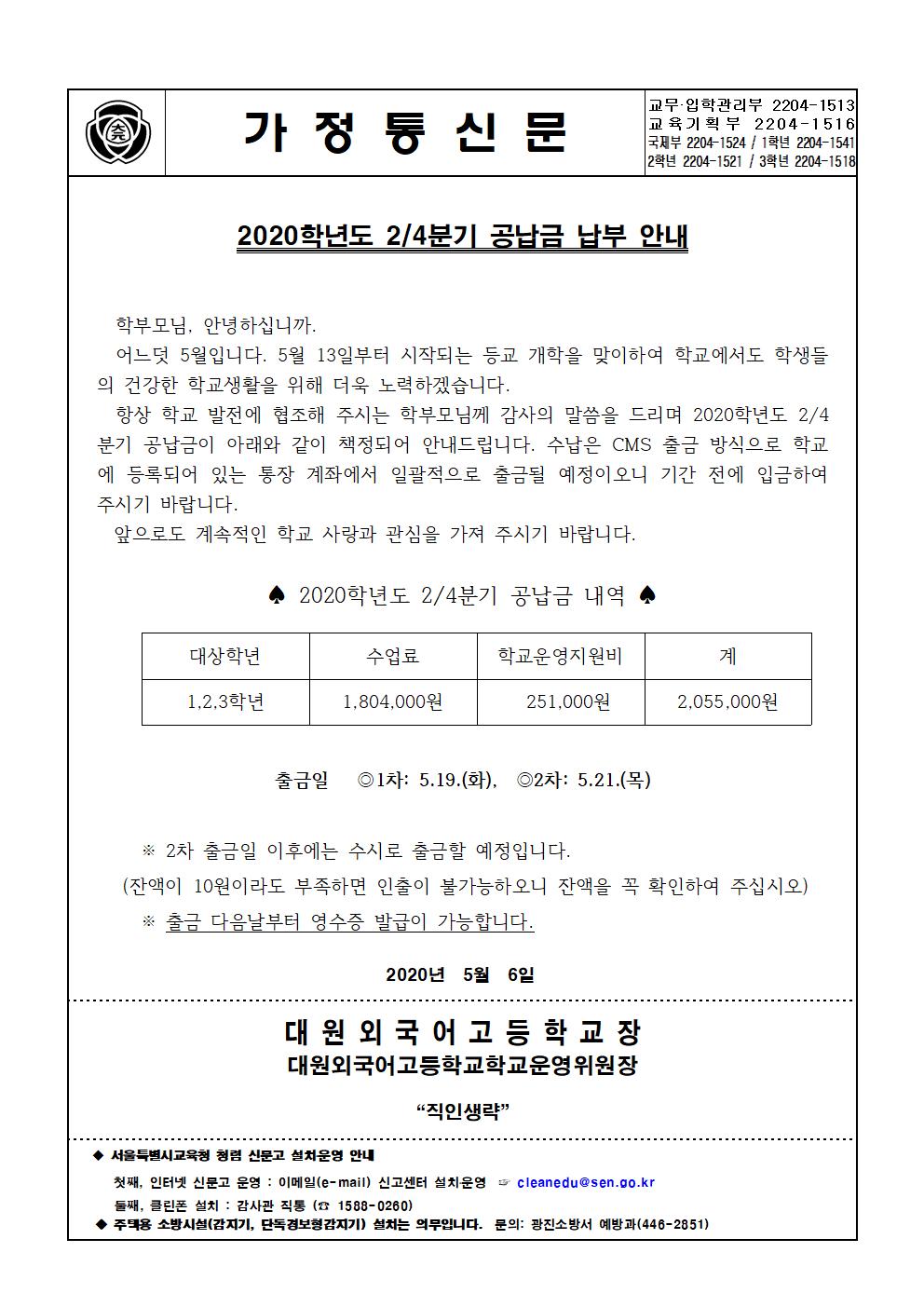 ÀÌ ÆäÀÌÁö´Â ÀÚ¹Ù½ºÅ©¸³Æ®°¡ Áö¿øµÇÁö ¾Ê´Â ºê¶ó¿ìÀú¿¡¼ ÀϺΠ±â´ÉÀÌ Á¦´ë·Î ÀÛµ¿ÇÏÁö ¾Ê½À´Ï´Ù. Á¦¸ñ 2020Çг⵵ 2/4ºÐ±â °ø³³±Ý ³³ºÎ ¾È³» À̸§ ´ë¿ø¿Ü°í µî·ÏÀÏ 2020-05-08 ÷ºÎÆÄÀÏ 2ºÐ±â_Çкñ_°¡Á¤Åë½Å¹®.pdf   ´Ù¿î·Îµå ¼ö : [ 71 ] Àüü ÆÄÀÏ ´Ù¿î·Îµå ºê¶ó¿ìÀú º¸¾È ¾÷µ¥ÀÌÆ®·Î ÀÎÇÑ ´Ù¿î·Îµå ºÒ°¡ ½Ã, ´Ù¿î·Îµå ¾È³» ¿§Áö : edge://settings/content/insecureContent [Ŭ¸¯ ÈÄ ÁÖ¼Òâ¿¡ ºÙ¿©³Ö±â] Å©·Ò : chrome://settings/content/insecureContent [Ŭ¸¯ ÈÄ ÁÖ¼Òâ¿¡ ºÙ¿©³Ö±â] À§ ÁÖ¼Ò·Î Á¢±ÙÇϼż Çã¿ë ºÎºÐ¿¡ Çб³ µµ¸ÞÀÎ()À» ³Ö°í ÀúÀåÇÏ½Ã¸é ´Ù¿î·Îµå°¡ °¡´ÉÇØÁý´Ï´Ù. ÀμâÇϱ⠸ñ·Ï ÀÌÀü±Û Á¦11±â Çб³¿î¿µÀ§¿øÈ¸ 1Çгâ ÇкθðÀ§¿ø ¼±°Å°á°ú ¾È³» / ´ë¿ø¿Ü°í 2020.04.24 ´ÙÀ½±Û 2020Çг⵵ ½ÅÀÔ»ý ±³º¹(µ¿º¹ ¹× ÇϺ¹) Çб³ÁÖ°ü±¸¸Å CMS Ãâ±Ý ¾È³» / ´ë¿ø¿Ü°í 2020.05.15