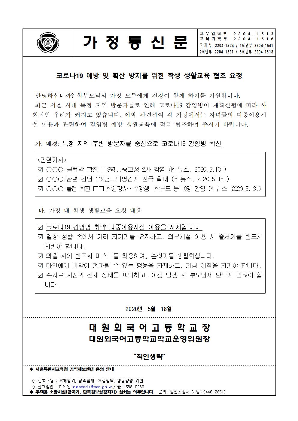 ÀÌ ÆäÀÌÁö´Â ÀÚ¹Ù½ºÅ©¸³Æ®°¡ Áö¿øµÇÁö ¾Ê´Â ºê¶ó¿ìÀú¿¡¼ ÀϺΠ±â´ÉÀÌ Á¦´ë·Î ÀÛµ¿ÇÏÁö ¾Ê½À´Ï´Ù. Á¦¸ñ Äڷγª19 ¿¹¹æ ¹× È®»ê ¹æÁö¸¦ À§ÇÑ Çлý »ýȰ±³À° ÇùÁ¶ ¿äû À̸§ ´ë¿ø¿Ü°í µî·ÏÀÏ 2020-05-18 ÷ºÎÆÄÀÏ Äڷγª19_¿¹¹æ_¹×_È®»ê_¹æÁö¸¦_À§ÇÑ_Çлý_»ýȰ±³À°_ÇùÁ¶_¿äû_°¡Á¤Åë½Å¹®.pdf   ´Ù¿î·Îµå ¼ö : [ 21 ] Àüü ÆÄÀÏ ´Ù¿î·Îµå ºê¶ó¿ìÀú º¸¾È ¾÷µ¥ÀÌÆ®·Î ÀÎÇÑ ´Ù¿î·Îµå ºÒ°¡ ½Ã, ´Ù¿î·Îµå ¾È³» ¿§Áö : edge://settings/content/insecureContent [Ŭ¸¯ ÈÄ ÁÖ¼Òâ¿¡ ºÙ¿©³Ö±â] Å©·Ò : chrome://settings/content/insecureContent [Ŭ¸¯ ÈÄ ÁÖ¼Òâ¿¡ ºÙ¿©³Ö±â] À§ ÁÖ¼Ò·Î Á¢±ÙÇϼż Çã¿ë ºÎºÐ¿¡ Çб³ µµ¸ÞÀÎ()À» ³Ö°í ÀúÀåÇÏ½Ã¸é ´Ù¿î·Îµå°¡ °¡´ÉÇØÁý´Ï´Ù. ÀμâÇϱ⠸ñ·Ï ÀÌÀü±Û 2020Çг⵵ 3Çг⠱³À°°èȹ¼³¸íȸ °¡Á¤Åë½Å¹® / ´ë¿ø¿Ü°í 2020.05.18 ´ÙÀ½±Û Äڷγª19°¨¿°Áõ ¿¹¹æ µî±³ Áöħ ¾È³» / ´ë¿ø¿Ü°í 2020.05.18