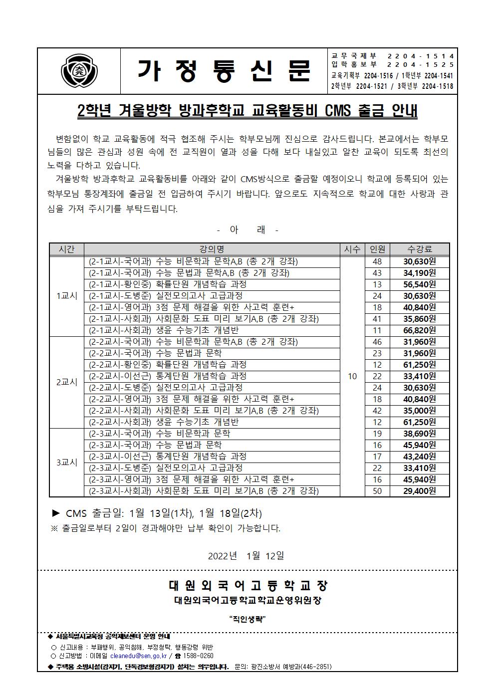 ÀÌ ÆäÀÌÁö´Â ÀÚ¹Ù½ºÅ©¸³Æ®°¡ Áö¿øµÇÁö ¾Ê´Â ºê¶ó¿ìÀú¿¡¼ ÀϺΠ±â´ÉÀÌ Á¦´ë·Î ÀÛµ¿ÇÏÁö ¾Ê½À´Ï´Ù. Á¦¸ñ 2ÇÐ³â °Ü¿ï¹æÇÐ ¹æ°úÈÄÇб³ ±³À°È°µ¿ºñ CMS Ãâ±Ý ¾È³» À̸§ ´ë¿ø¿Ü°í µî·ÏÀÏ 2022-01-12 ÷ºÎÆÄÀÏ 2021Çг⵵ 2ÇÐ³â °Ü¿ï¹æÇÐ ¹æ°úÈÄÇб³-CMSÃâ±Ý ¾È³» °¡Á¤Åë½Å¹®.pdf   ´Ù¿î·Îµå ¼ö : [ 30 ] Àüü ÆÄÀÏ ´Ù¿î·Îµå ºê¶ó¿ìÀú º¸¾È ¾÷µ¥ÀÌÆ®·Î ÀÎÇÑ ´Ù¿î·Îµå ºÒ°¡ ½Ã, ´Ù¿î·Îµå ¾È³» ¿§Áö : edge://settings/content/insecureContent [Ŭ¸¯ ÈÄ ÁÖ¼Òâ¿¡ ºÙ¿©³Ö±â] Å©·Ò : chrome://settings/content/insecureContent [Ŭ¸¯ ÈÄ ÁÖ¼Òâ¿¡ ºÙ¿©³Ö±â] À§ ÁÖ¼Ò·Î Á¢±ÙÇϼż Çã¿ë ºÎºÐ¿¡ Çб³ µµ¸ÞÀÎ()À» ³Ö°í ÀúÀåÇÏ½Ã¸é ´Ù¿î·Îµå°¡ °¡´ÉÇØÁý´Ï´Ù. ÀμâÇϱ⠸ñ·Ï ÀÌÀü±Û 1ÇÐ³â °Ü¿ï¹æÇÐ ¹æ°úÈÄÇб³ ±³À°È°µ¿ºñ CMS Ãâ±Ý ¾È³» / ´ë¿ø¿Ü°í 2022.01.10 ´ÙÀ½±Û 2021Çг⵵ Á¦36ȸ Á¹¾÷½Ä ¾È³» / ´ë¿ø¿Ü°í 2022.02.03