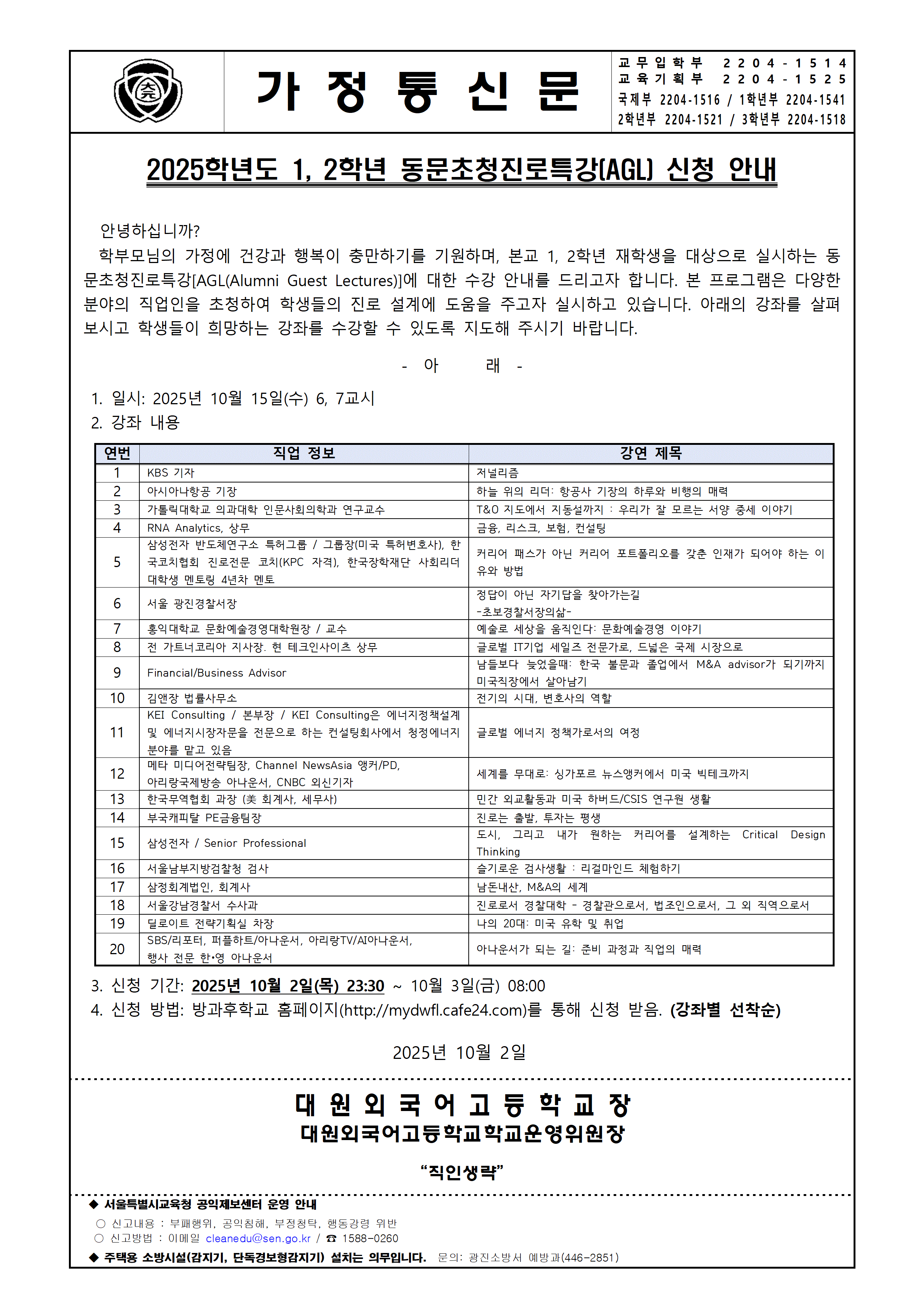 ÀÌ ÆäÀÌÁö´Â ÀÚ¹Ù½ºÅ©¸³Æ®°¡ Áö¿øµÇÁö ¾Ê´Â ºê¶ó¿ìÀú¿¡¼ ÀϺΠ±â´ÉÀÌ Á¦´ë·Î ÀÛµ¿ÇÏÁö ¾Ê½À´Ï´Ù. Á¦¸ñ 2025Çг⵵ µ¿¹®ÃÊûÁø·ÎƯ°(AGL) ½Åû ¾È³» °¡Á¤Åë½Å¹® À̸§ ÃÖÇöÀÏ µî·ÏÀÏ 2025-10-02 ÷ºÎÆÄÀÏ Àüü ÆÄÀÏ ´Ù¿î·Îµå ºê¶ó¿ìÀú º¸¾È ¾÷µ¥ÀÌÆ®·Î ÀÎÇÑ ´Ù¿î·Îµå ºÒ°¡ ½Ã, ´Ù¿î·Îµå ¾È³» ¿§Áö : edge://settings/content/insecureContent [Ŭ¸¯ ÈÄ ÁÖ¼Òâ¿¡ ºÙ¿©³Ö±â] Å©·Ò : chrome://settings/content/insecureContent [Ŭ¸¯ ÈÄ ÁÖ¼Òâ¿¡ ºÙ¿©³Ö±â] À§ ÁÖ¼Ò·Î Á¢±ÙÇϼż Çã¿ë ºÎºÐ¿¡ Çб³ µµ¸ÞÀÎ()À» ³Ö°í ÀúÀåÇÏ½Ã¸é ´Ù¿î·Îµå°¡ °¡´ÉÇØÁý´Ï´Ù. ÀμâÇϱ⠸ñ·Ï ÀÌÀü±Û 2025Çг⵵ 4ºÐ±â 3Çг⠵î·Ï±Ý ³³ºÎ ¾È³» / ÀåÁ¤¿ì 2025.10.01 ´ÙÀ½±Û Áø·Î Á÷¾÷ üÇè Ȱµ¿ »çÀü ¾È³» °¡Á¤Åë½Å¹® / ÃÖÇöÀÏ 2025.10.29