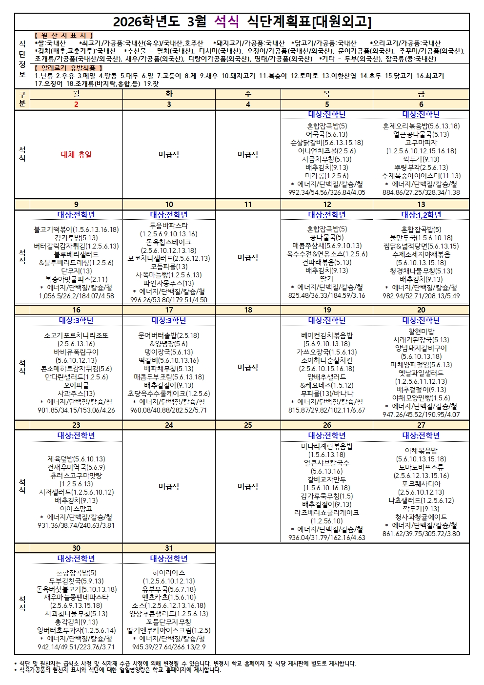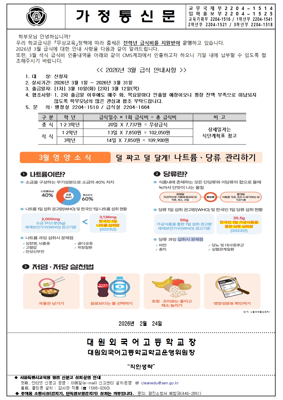 - 2026Çг⵵ 3¿ù Çб³±Þ½Ä(Áß,¼®) °¡Á¤Åë½Å¹®(¼®½Äºñ ÀÎÃ⠾ȳ», ¿µ¾ç¼Ò½Ä, ½Ä´Ü°èȹǥ)