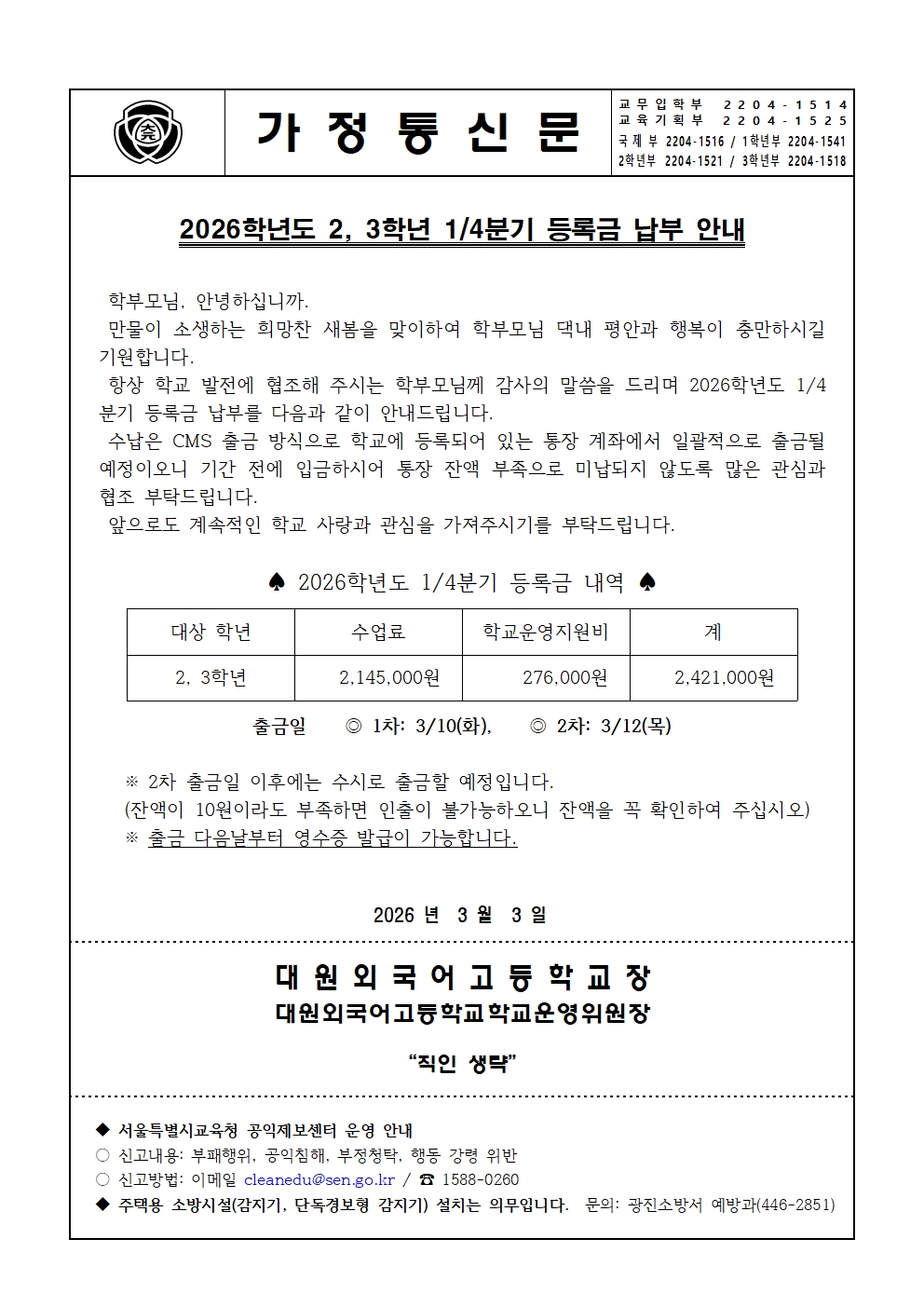 - 2026Çг⵵ 3¿ù Çб³±Þ½Ä(Áß,¼®) °¡Á¤Åë½Å¹®(¼®½Äºñ ÀÎÃ⠾ȳ», ¿µ¾ç¼Ò½Ä, ½Ä´Ü°èȹǥ)