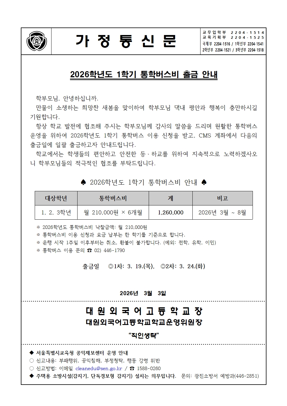 ÀÌ ÆäÀÌÁö´Â ÀÚ¹Ù½ºÅ©¸³Æ®°¡ Áö¿øµÇÁö ¾Ê´Â ºê¶ó¿ìÀú¿¡¼ ÀϺΠ±â´ÉÀÌ Á¦´ë·Î ÀÛµ¿ÇÏÁö ¾Ê½À´Ï´Ù. Á¦¸ñ 2026Çг⵵ 1Çбâ ÅëÇйö½ººñ Ãâ±Ý ¾È³» À̸§ ÀåÁ¤¿ì µî·ÏÀÏ 2026-03-03 ÷ºÎÆÄÀÏ 2026Çг⵵ 1Çбâ ÅëÇйö½ººñ °¡Á¤Åë½Å¹®.hwp   ´Ù¿î·Îµå ¼ö : [ 22 ] Àüü ÆÄÀÏ ´Ù¿î·Îµå ºê¶ó¿ìÀú º¸¾È ¾÷µ¥ÀÌÆ®·Î ÀÎÇÑ ´Ù¿î·Îµå ºÒ°¡ ½Ã, ´Ù¿î·Îµå ¾È³» ¿§Áö : edge://settings/content/insecureContent [Ŭ¸¯ ÈÄ ÁÖ¼Òâ¿¡ ºÙ¿©³Ö±â] Å©·Ò : chrome://settings/content/insecureContent [Ŭ¸¯ ÈÄ ÁÖ¼Òâ¿¡ ºÙ¿©³Ö±â] À§ ÁÖ¼Ò·Î Á¢±ÙÇϼż Çã¿ë ºÎºÐ¿¡ Çб³ µµ¸ÞÀÎ()À» ³Ö°í ÀúÀåÇÏ½Ã¸é ´Ù¿î·Îµå°¡ °¡´ÉÇØÁý´Ï´Ù. ÀμâÇϱ⠸ñ·Ï ÀÌÀü±Û 2026Çг⵵ ±³¿í±Þ¿© ¹× ±³À°ºñ ÁýÁ߱Ⱓ ½Åû ¾È³» / ÀåÁ¤¿ì 2026.03.03 ´ÙÀ½±Û ¼ö¾÷ ÀúÀÛ±Ç ¹× ¼ö¾÷ÄÜÅÙÃ÷ ÀÌ¿ë °ü·Ã Çлý À¯ÀÇ»çÇ× ±³À° °¡Á¤Åë½Å¹® / °ü¸®ÀÚ 2026.03.12