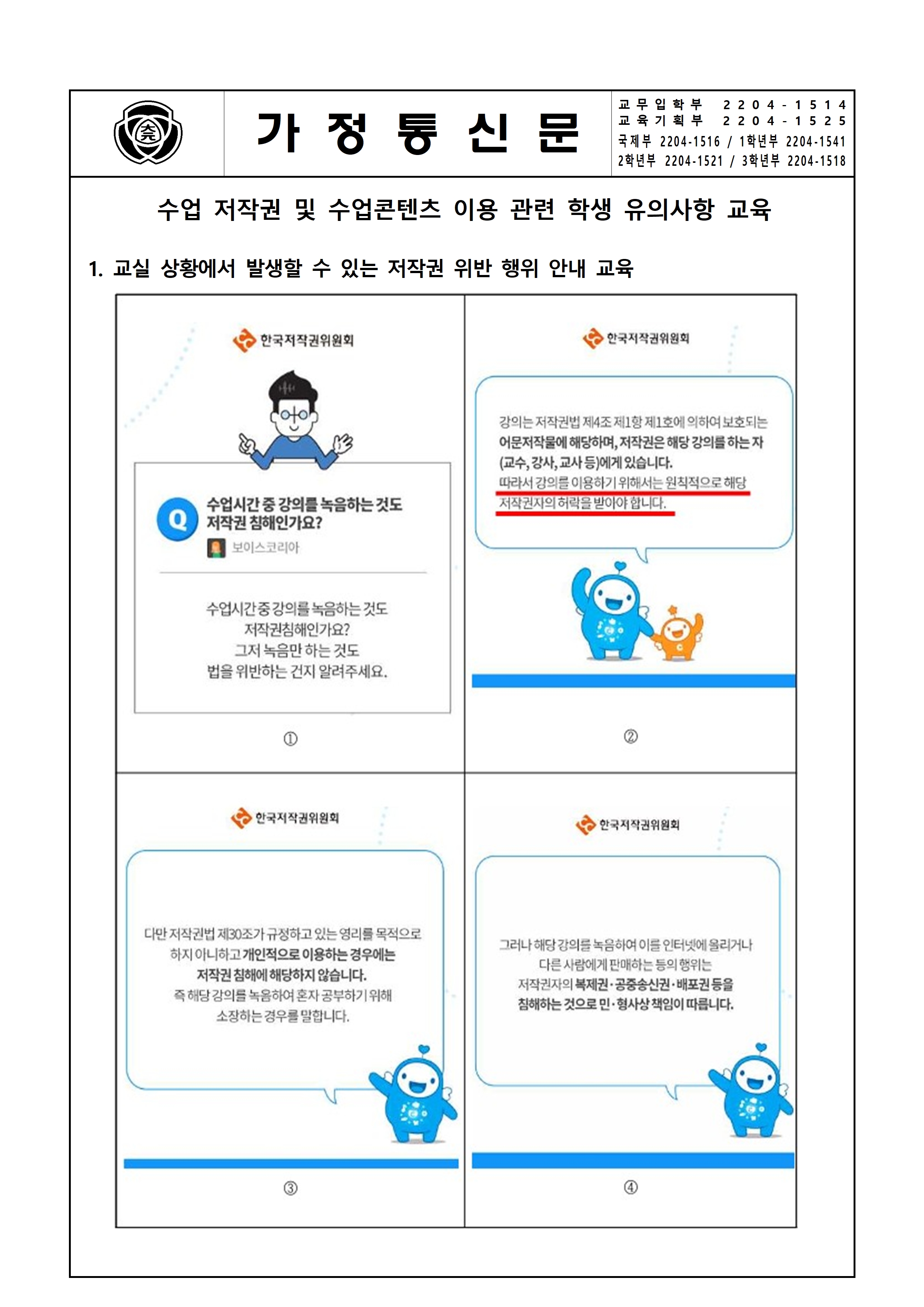 ÀÌ ÆäÀÌÁö´Â ÀÚ¹Ù½ºÅ©¸³Æ®°¡ Áö¿øµÇÁö ¾Ê´Â ºê¶ó¿ìÀú¿¡¼ ÀϺΠ±â´ÉÀÌ Á¦´ë·Î ÀÛµ¿ÇÏÁö ¾Ê½À´Ï´Ù. Á¦¸ñ ¼ö¾÷ ÀúÀÛ±Ç ¹× ¼ö¾÷ÄÜÅÙÃ÷ ÀÌ¿ë °ü·Ã Çлý À¯ÀÇ»çÇ× ±³À° °¡Á¤Åë½Å¹® À̸§ °ü¸®ÀÚ µî·ÏÀÏ 2026-03-12 ÷ºÎÆÄÀÏ ¼ö¾÷ ÀúÀÛ±Ç ¹× ¼ö¾÷ÄÜÅÙÃ÷ ÀÌ¿ë °ü·Ã Çлý À¯ÀÇ»çÇ× °¡Á¤Åë½Å¹®.hwp   ´Ù¿î·Îµå ¼ö : [ 20 ] Àüü ÆÄÀÏ ´Ù¿î·Îµå ºê¶ó¿ìÀú º¸¾È ¾÷µ¥ÀÌÆ®·Î ÀÎÇÑ ´Ù¿î·Îµå ºÒ°¡ ½Ã, ´Ù¿î·Îµå ¾È³» ¿§Áö : edge://settings/content/insecureContent [Ŭ¸¯ ÈÄ ÁÖ¼Òâ¿¡ ºÙ¿©³Ö±â] Å©·Ò : chrome://settings/content/insecureContent [Ŭ¸¯ ÈÄ ÁÖ¼Òâ¿¡ ºÙ¿©³Ö±â] À§ ÁÖ¼Ò·Î Á¢±ÙÇϼż Çã¿ë ºÎºÐ¿¡ Çб³ µµ¸ÞÀÎ()À» ³Ö°í ÀúÀåÇÏ½Ã¸é ´Ù¿î·Îµå°¡ °¡´ÉÇØÁý´Ï´Ù. ÀμâÇϱ⠸ñ·Ï ÀÌÀü±Û 2026Çг⵵ 1Çбâ ÅëÇйö½ººñ Ãâ±Ý ¾È³» / ÀåÁ¤¿ì 2026.03.03 ´ÙÀ½±Û 2026Çг⵵ °³ÀÎÁ¤º¸ ¼öÁýÀÌ¿ë µ¿ÀǼ / À±¼Áø 2026.03.12