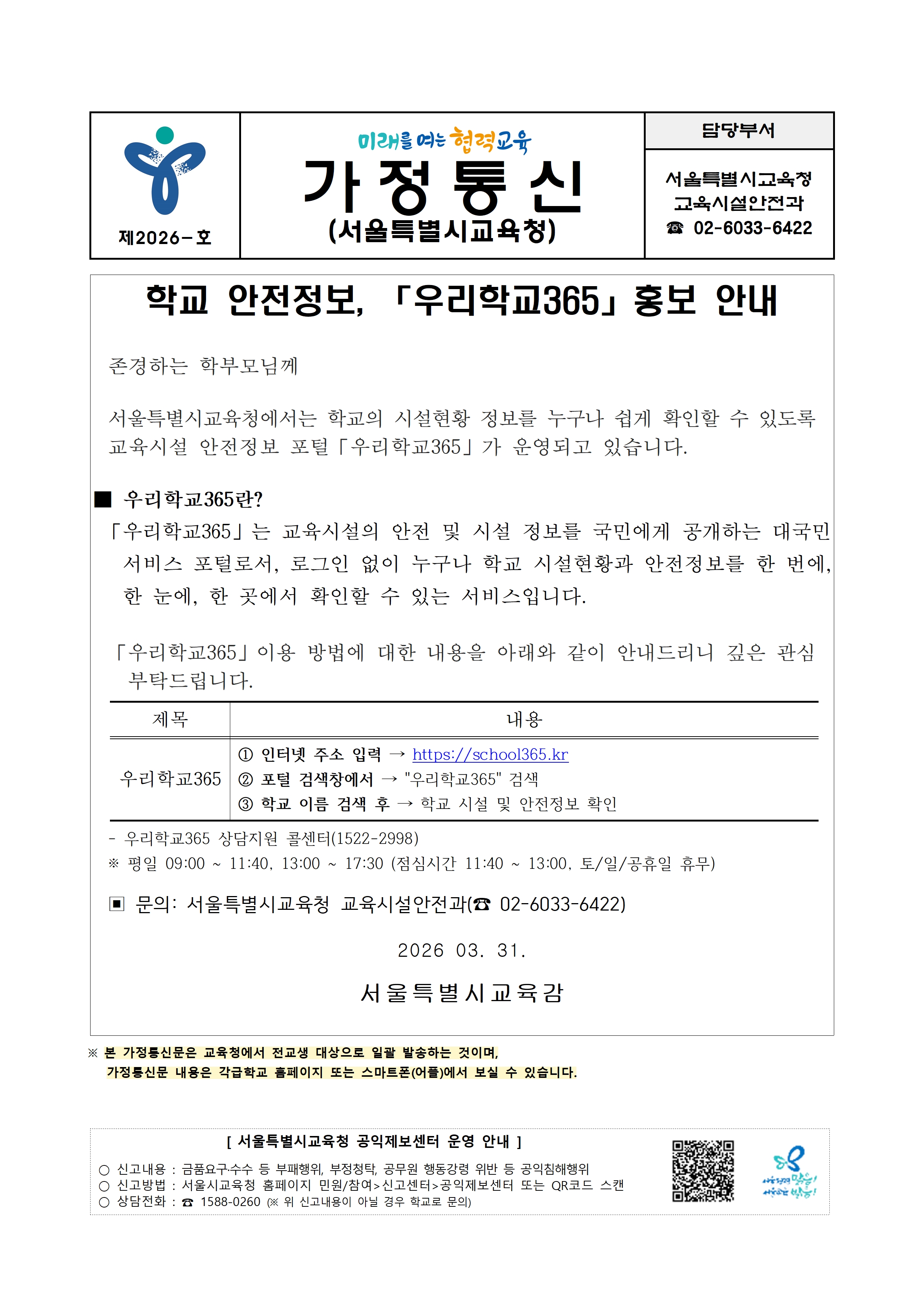 Çб³ ¾ÈÀüÁ¤º¸, ¡¸¿ì¸®Çб³365¡¹È«º¸ ¾È³»
