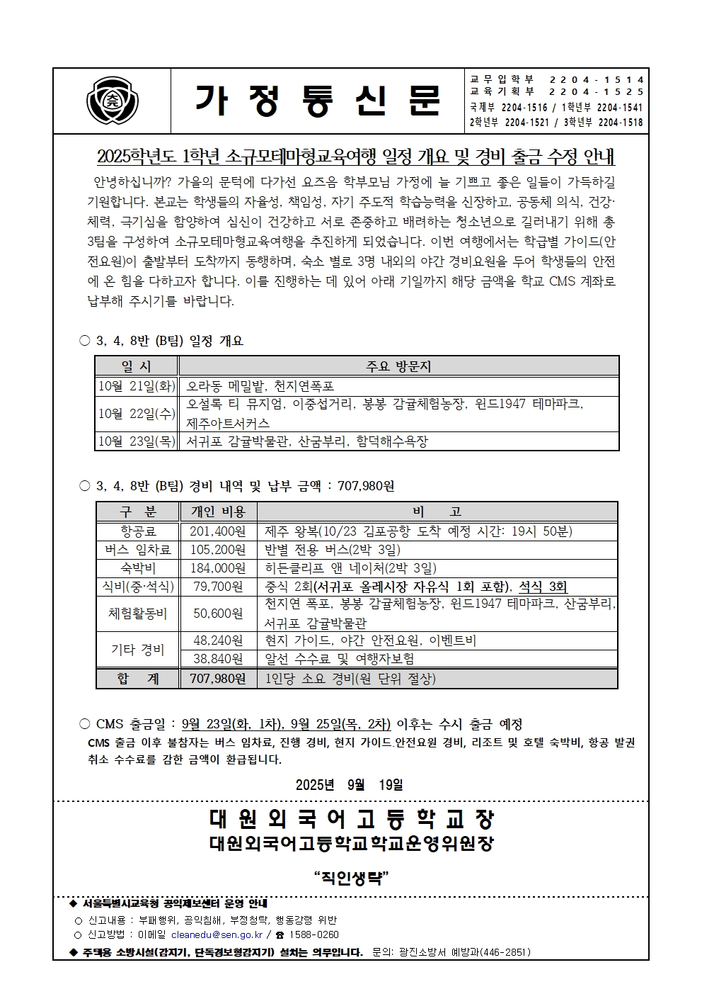 ÀÌ ÆäÀÌÁö´Â ÀÚ¹Ù½ºÅ©¸³Æ®°¡ Áö¿øµÇÁö ¾Ê´Â ºê¶ó¿ìÀú¿¡¼ ÀϺΠ±â´ÉÀÌ Á¦´ë·Î ÀÛµ¿ÇÏÁö ¾Ê½À´Ï´Ù. Á¦¸ñ 2025Çг⵵ 1Çг⠼ұԸðÅ׸¶Çü±³À°¿©Çà °æºñ CMS Ãâ±Ý ¾È³» À̸§ ´ë¿ø¿Ü°í µî·ÏÀÏ 2025-09-19 ÷ºÎÆÄÀÏ Àüü ÆÄÀÏ ´Ù¿î·Îµå ºê¶ó¿ìÀú º¸¾È ¾÷µ¥ÀÌÆ®·Î ÀÎÇÑ ´Ù¿î·Îµå ºÒ°¡ ½Ã, ´Ù¿î·Îµå ¾È³» ¿§Áö : edge://settings/content/insecureContent [Ŭ¸¯ ÈÄ ÁÖ¼Òâ¿¡ ºÙ¿©³Ö±â] Å©·Ò : chrome://settings/content/insecureContent [Ŭ¸¯ ÈÄ ÁÖ¼Òâ¿¡ ºÙ¿©³Ö±â] À§ ÁÖ¼Ò·Î Á¢±ÙÇϼż Çã¿ë ºÎºÐ¿¡ Çб³ µµ¸ÞÀÎ()À» ³Ö°í ÀúÀåÇÏ½Ã¸é ´Ù¿î·Îµå°¡ °¡´ÉÇØÁý´Ï´Ù. ÀμâÇϱ⠸ñ·Ï ÀÌÀü±Û 2025Çг⵵ 2Çг⠼ұԸðÅ׸¶Çü±³À°¿©Çà °æºñ CMS Ãâ±Ý ¾È³» / ´ë¿ø¿Ü°í 2025.09.17 ´ÙÀ½±Û 2025Çг⵵ 4ºÐ±â 3Çг⠵î·Ï±Ý ³³ºÎ ¾È³» / ÀåÁ¤¿ì 2025.10.01