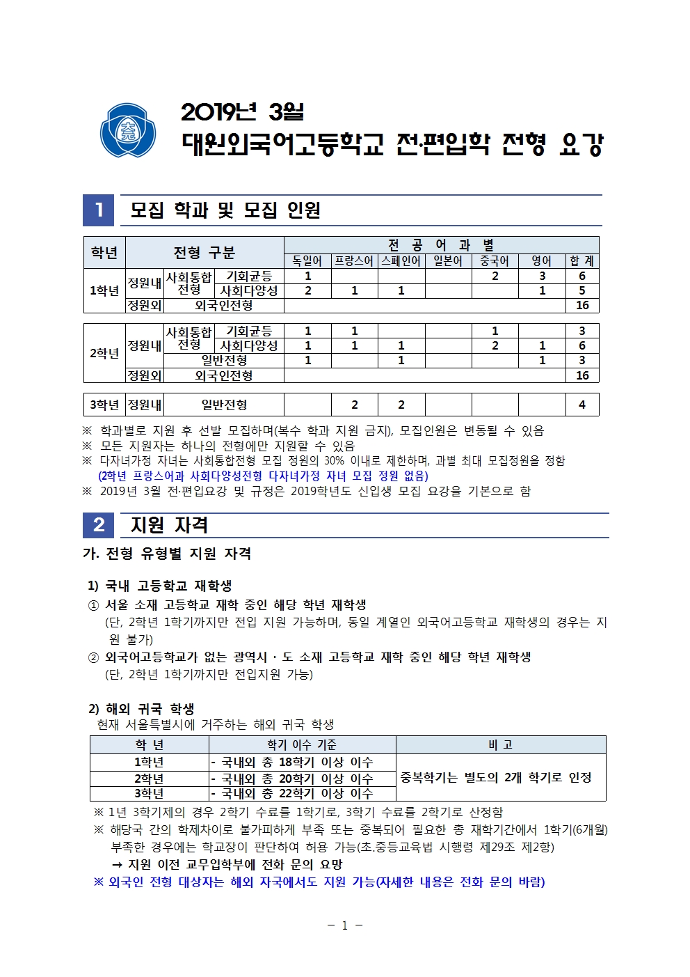 - 2019Çг⵵ ´ë¿ø¿Ü±¹¾î°íµîÇб³ ¿Ü±¹ÀÎÀüÇü ÀüÆíÀÔÇÐ ¾È³»