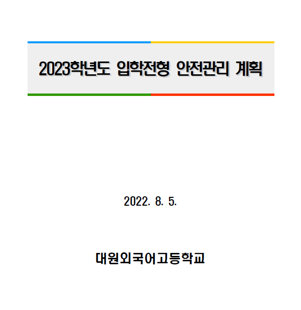 ÀÌ ÆäÀÌÁö´Â ÀÚ¹Ù½ºÅ©¸³Æ®°¡ Áö¿øµÇÁö ¾Ê´Â ºê¶ó¿ìÀú¿¡¼ ÀϺΠ±â´ÉÀÌ Á¦´ë·Î ÀÛµ¿ÇÏÁö ¾Ê½À´Ï´Ù. Á¦¸ñ 2023Çг⵵ ÀÔÇÐÀüÇü ¾ÈÀü°ü¸® °èȹ À̸§ ´ë¿ø¿Ü°í µî·ÏÀÏ 2022-09-07 ÷ºÎÆÄÀÏ 2023Çг⵵ ´ë¿ø¿Ü±¹¾î°íµîÇб³ ÀÔÇÐÀüÇü ¾ÈÀü°ü¸® °èȹ.pdf   ´Ù¿î·Îµå ¼ö : [ 146 ] Àüü ÆÄÀÏ ´Ù¿î·Îµå ºê¶ó¿ìÀú º¸¾È ¾÷µ¥ÀÌÆ®·Î ÀÎÇÑ ´Ù¿î·Îµå ºÒ°¡ ½Ã, ´Ù¿î·Îµå ¾È³» ¿§Áö : edge://settings/content/insecureContent [Ŭ¸¯ ÈÄ ÁÖ¼Òâ¿¡ ºÙ¿©³Ö±â] Å©·Ò : chrome://settings/content/insecureContent [Ŭ¸¯ ÈÄ ÁÖ¼Òâ¿¡ ºÙ¿©³Ö±â] À§ ÁÖ¼Ò·Î Á¢±ÙÇϼż Çã¿ë ºÎºÐ¿¡ Çб³ µµ¸ÞÀÎ()À» ³Ö°í ÀúÀåÇÏ½Ã¸é ´Ù¿î·Îµå°¡ °¡´ÉÇØÁý´Ï´Ù. ÀμâÇϱ⠸ñ·Ï ÀÌÀü±Û 2022³â ´ë¿ø¿Ü±¹¾î°íµîÇб³ 2Çб⠻ó½Ã ÀüÆíÀÔÇÐÀüÇü¿ä° / ´ë¿ø¿Ü°í 2022.08.19 ´ÙÀ½±Û 2023Çг⵵ ´ë¿ø¿Ü°í ½ÅÀÔ»ý ÀÔÇÐ µî·Ï±Ý ¾È³» / ´ë¿ø¿Ü°í 2022.11.03