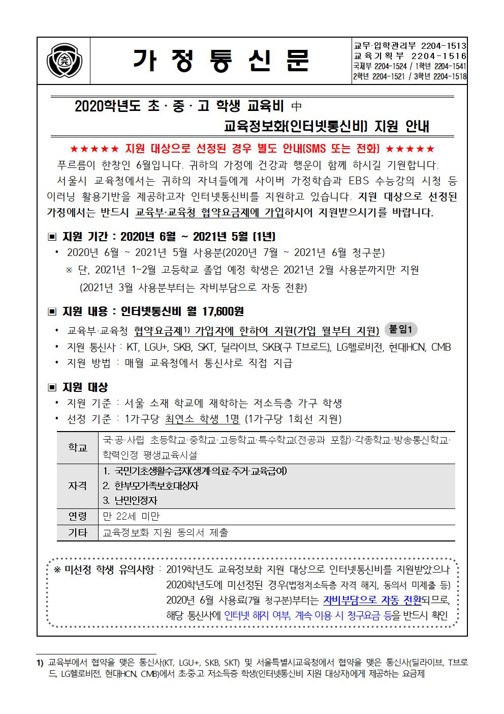ÀÌ ÆäÀÌÁö´Â ÀÚ¹Ù½ºÅ©¸³Æ®°¡ Áö¿øµÇÁö ¾Ê´Â ºê¶ó¿ìÀú¿¡¼ ÀϺΠ±â´ÉÀÌ Á¦´ë·Î ÀÛµ¿ÇÏÁö ¾Ê½À´Ï´Ù. Á¦¸ñ 2020Çг⵵ ±³À°Á¤º¸È(ÀÎÅͳÝÅë½Åºñ) Áö¿ø ¾È³» À̸§ ¹é¼öÁø µî·ÏÀÏ 2020-06-11 ÷ºÎÆÄÀÏ ±³À°Á¤º¸È(ÀÎÅͳÝÅë½Åºñ)_Áö¿ø_¾È³»_°¡Á¤Åë½Å¹®.pdf   ´Ù¿î·Îµå ¼ö : [ 31 ] Àüü ÆÄÀÏ ´Ù¿î·Îµå ºê¶ó¿ìÀú º¸¾È ¾÷µ¥ÀÌÆ®·Î ÀÎÇÑ ´Ù¿î·Îµå ºÒ°¡ ½Ã, ´Ù¿î·Îµå ¾È³» ¿§Áö : edge://settings/content/insecureContent [Ŭ¸¯ ÈÄ ÁÖ¼Òâ¿¡ ºÙ¿©³Ö±â] Å©·Ò : chrome://settings/content/insecureContent [Ŭ¸¯ ÈÄ ÁÖ¼Òâ¿¡ ºÙ¿©³Ö±â] À§ ÁÖ¼Ò·Î Á¢±ÙÇϼż Çã¿ë ºÎºÐ¿¡ Çб³ µµ¸ÞÀÎ()À» ³Ö°í ÀúÀåÇÏ½Ã¸é ´Ù¿î·Îµå°¡ °¡´ÉÇØÁý´Ï´Ù. ÀμâÇϱ⠸ñ·Ï ÀÌÀü±Û ½ÃÇè ±â°£ ÁßÀÇ Ãâ°á°ú Æò°¡¿¡ °üÇÑ Áß¿ä»çÇ× ¾È³» / ´ë¿ø¿Ü°í 2020.06.08 ´ÙÀ½±Û ¿Â¶óÀÎ ÇнÀ µ¥ÀÌÅÍ ¹«·á Áö¿ø ¿¬Àå ¾È³» / ´ë¿ø¿Ü°í 2020.06.17