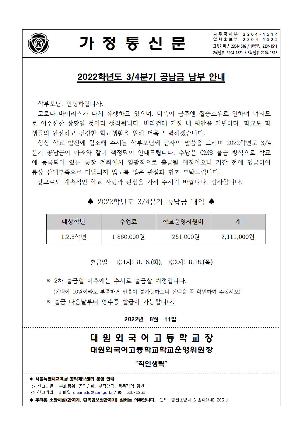 ÀÌ ÆäÀÌÁö´Â ÀÚ¹Ù½ºÅ©¸³Æ®°¡ Áö¿øµÇÁö ¾Ê´Â ºê¶ó¿ìÀú¿¡¼ ÀϺΠ±â´ÉÀÌ Á¦´ë·Î ÀÛµ¿ÇÏÁö ¾Ê½À´Ï´Ù. Á¦¸ñ 2022Çг⵵ 3/4ºÐ±â °ø³³±Ý ³³ºÎ ¾È³» À̸§ Àü½Å¸í µî·ÏÀÏ 2022-08-12 ÷ºÎÆÄÀÏ 3ºÐ±â Çкñ °¡Á¤Åë½Å¹®.pdf   ´Ù¿î·Îµå ¼ö : [ 39 ] Àüü ÆÄÀÏ ´Ù¿î·Îµå ºê¶ó¿ìÀú º¸¾È ¾÷µ¥ÀÌÆ®·Î ÀÎÇÑ ´Ù¿î·Îµå ºÒ°¡ ½Ã, ´Ù¿î·Îµå ¾È³» ¿§Áö : edge://settings/content/insecureContent [Ŭ¸¯ ÈÄ ÁÖ¼Òâ¿¡ ºÙ¿©³Ö±â] Å©·Ò : chrome://settings/content/insecureContent [Ŭ¸¯ ÈÄ ÁÖ¼Òâ¿¡ ºÙ¿©³Ö±â] À§ ÁÖ¼Ò·Î Á¢±ÙÇϼż Çã¿ë ºÎºÐ¿¡ Çб³ µµ¸ÞÀÎ()À» ³Ö°í ÀúÀåÇÏ½Ã¸é ´Ù¿î·Îµå°¡ °¡´ÉÇØÁý´Ï´Ù. ÀμâÇϱ⠸ñ·Ï ÀÌÀü±Û 2022Çг⵵ 2Çбâ 2Â÷ EBS °í±³±³Àç ¹«»óÁö¿ø ½Åû ¾È³» °¡Á¤Åë½Å¹® / ´ë¿ø¿Ü°í 2022.07.27 ´ÙÀ½±Û 2022Çг⵵ 2Çбâ ÅëÇйö½ººñ Ãâ±Ý ¾È³» / Àü½Å¸í 2022.08.12