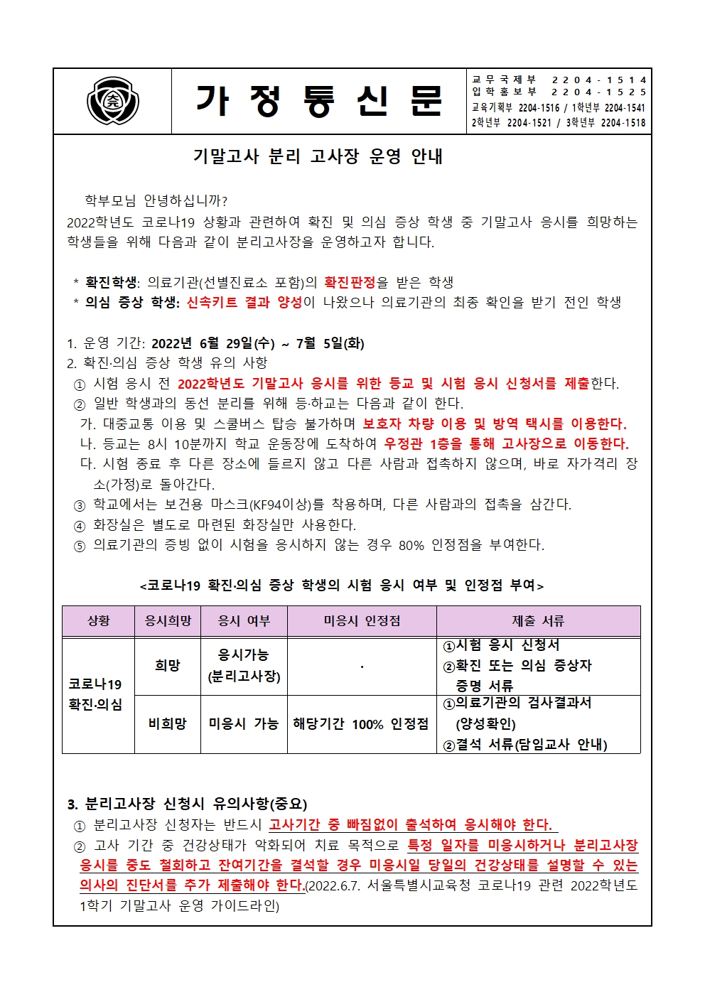 ÀÌ ÆäÀÌÁö´Â ÀÚ¹Ù½ºÅ©¸³Æ®°¡ Áö¿øµÇÁö ¾Ê´Â ºê¶ó¿ìÀú¿¡¼ ÀϺΠ±â´ÉÀÌ Á¦´ë·Î ÀÛµ¿ÇÏÁö ¾Ê½À´Ï´Ù. Á¦¸ñ ±â¸»°í»ç ºÐ¸® °í»çÀå ¿î¿µ ¾È³» °¡Á¤Åë½Å¹® À̸§ ´ë¿ø¿Ü°í µî·ÏÀÏ 2022-06-22 ÷ºÎÆÄÀÏ ±â¸»°í»ç ºÐ¸® °í»çÀå ¿î¿µ ¾È³» °¡Á¤Åë½Å¹®.pdf   ´Ù¿î·Îµå ¼ö : [ 33 ] Àüü ÆÄÀÏ ´Ù¿î·Îµå ºê¶ó¿ìÀú º¸¾È ¾÷µ¥ÀÌÆ®·Î ÀÎÇÑ ´Ù¿î·Îµå ºÒ°¡ ½Ã, ´Ù¿î·Îµå ¾È³» ¿§Áö : edge://settings/content/insecureContent [Ŭ¸¯ ÈÄ ÁÖ¼Òâ¿¡ ºÙ¿©³Ö±â] Å©·Ò : chrome://settings/content/insecureContent [Ŭ¸¯ ÈÄ ÁÖ¼Òâ¿¡ ºÙ¿©³Ö±â] À§ ÁÖ¼Ò·Î Á¢±ÙÇϼż Çã¿ë ºÎºÐ¿¡ Çб³ µµ¸ÞÀÎ()À» ³Ö°í ÀúÀåÇÏ½Ã¸é ´Ù¿î·Îµå°¡ °¡´ÉÇØÁý´Ï´Ù. ÀμâÇϱ⠸ñ·Ï ÀÌÀü±Û 2022³â ±³À°±Þ¿© ÇнÀƯº°Áö¿ø±Ý ½Åû ¾È³» / ´ë¿ø¿Ü°í 2022.06.20 ´ÙÀ½±Û ¿ø¼þÀ̵Îâ ´ëºñ À§±â°æº¸ ¡°ÁÖÀǴܰ衱 ¹ß·É ¾È³» / ´ë¿ø¿Ü°í 2022.06.27